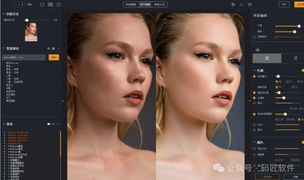 Radiant Photo不是普通的修图软件,而是一款搭载人工智能技术的图片处理工具。它懂得如何智能分析每张照片的内容,并施加恰到好处的优化。