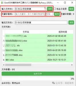 当查找结果呈现后,您只需轻点【合并文件】按钮,软件便会自动将这些文档的数据整合到一个表格中,高效又准确。
