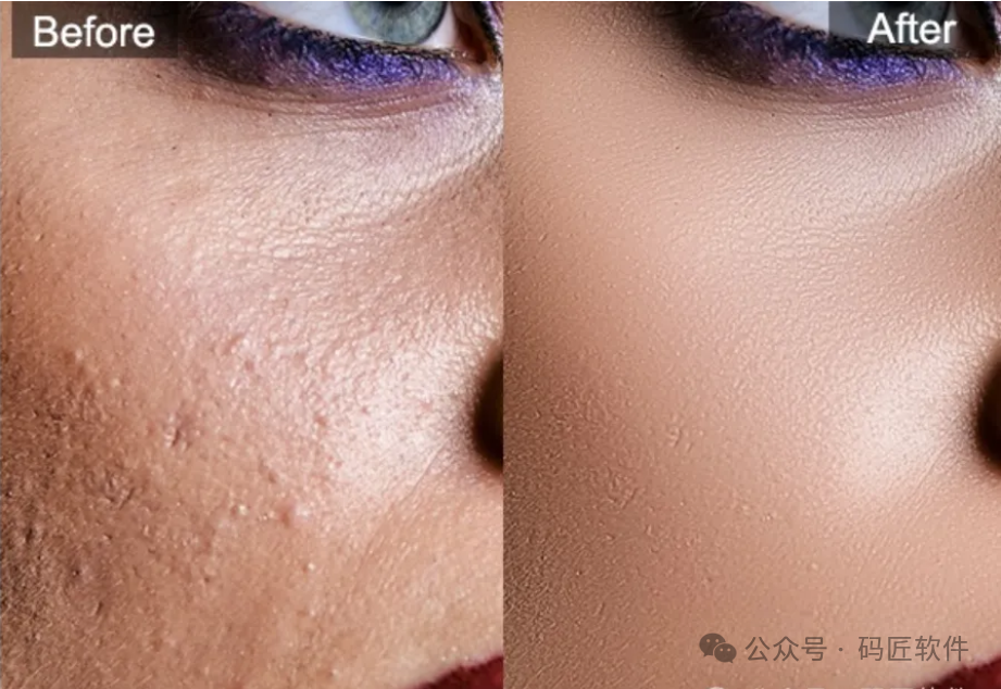 智能识别皮肤区域:AI算法能自动精准识别照片中的皮肤区域,避免影响头发、眉毛、衣物等细节。