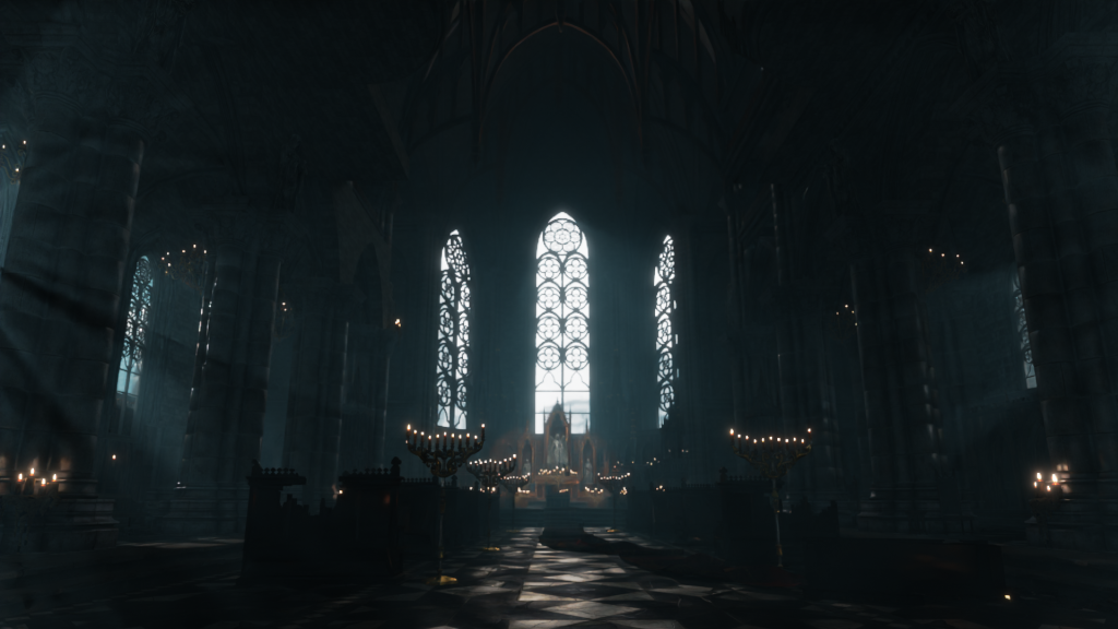 Blender电影级昏暗教堂场景《烛光弥撒》| 含IES烛光与体积雾 | 即开即渲工程文件