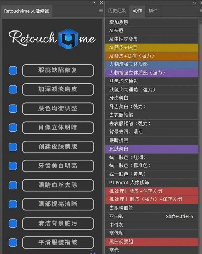 Retouch4me的13合一功能集合中包含了多个实用的插件。