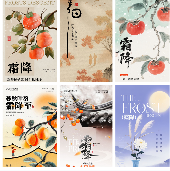 38款古风霜降寒露PS海报模板:以柿子为灵感,打造惊艳地产节气营销!