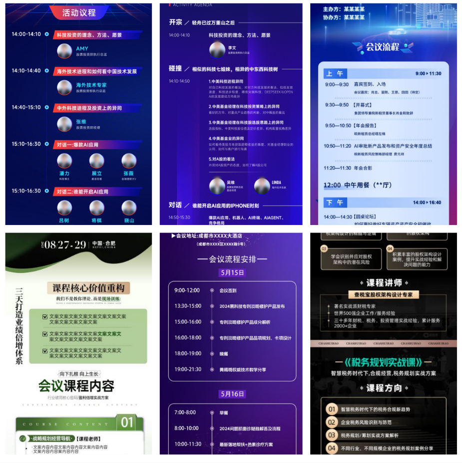 - 29套长图模板:邀请函+议程+流程图,科技商务场景全覆盖
