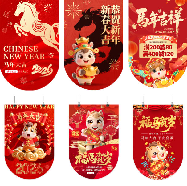 2026马年新春吊旗全案设计:25款PS模板,打造商超促销视觉盛宴