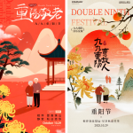 九九重阳节古风设计素材包 | 32款手机海报PSD模板,打造诗意朋友圈营销
